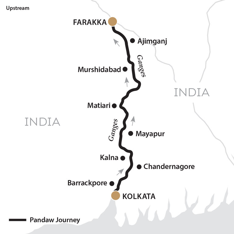 You will start or end our newly updated 7 night itinerary in either the former colonial capital of Kolkata or Farakka, location of the famous Farakka Barrage where the sacred Ganges flows into the Hoogly River. With one-way first class train ticket included between Farakka and Kolkata this is the perfect way to explore West Bengal in true Pandaw comfort and style.